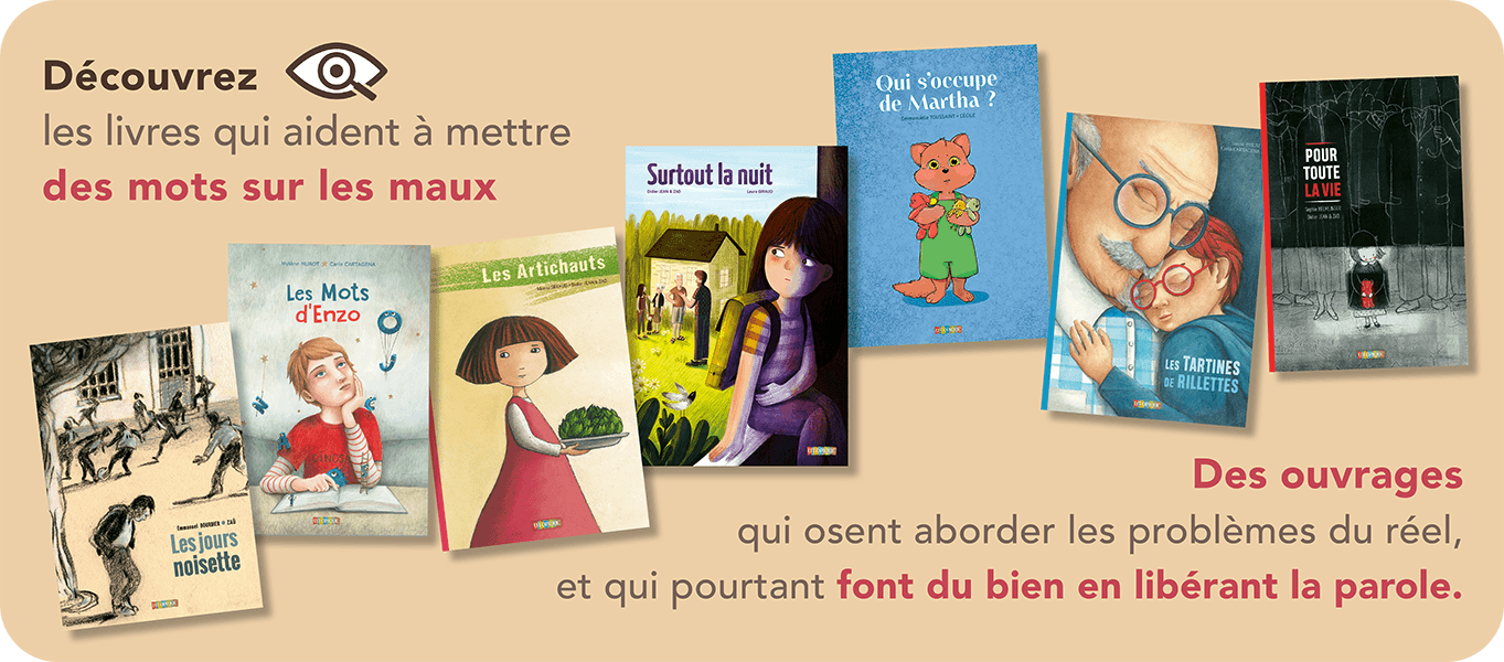 Si vous êtes intéressé pour aborder avec votre enfant des sujets sensibles, comme le handicap, la maladie, la mort... Si vous cherchez un livre pour enfant qui parle de transmission, de valeurs humanistes, de relations entre générations... Si vous voulez un album jeunesse qui évoque la fratrie, les violences intra-familiales... vous êtes au bon endroit : chez Utopique, éditeur indépendant qui ose poser des mots sur les maux !